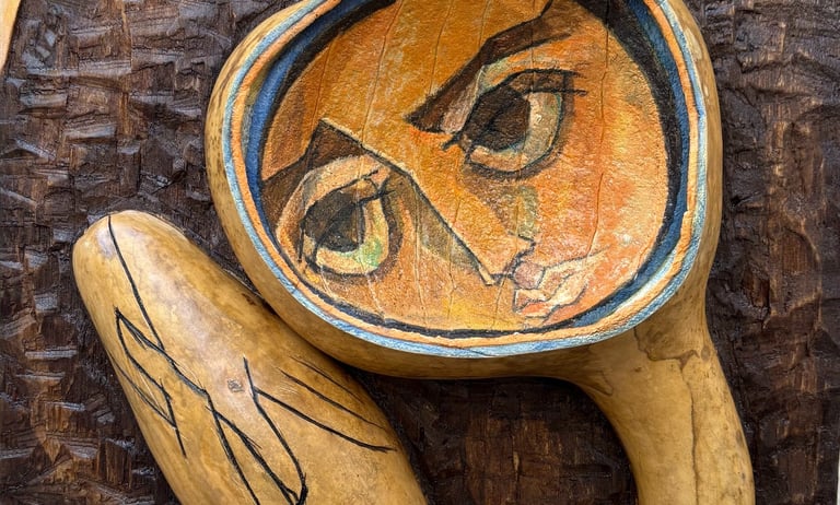 Collection of gourd on wood pieces